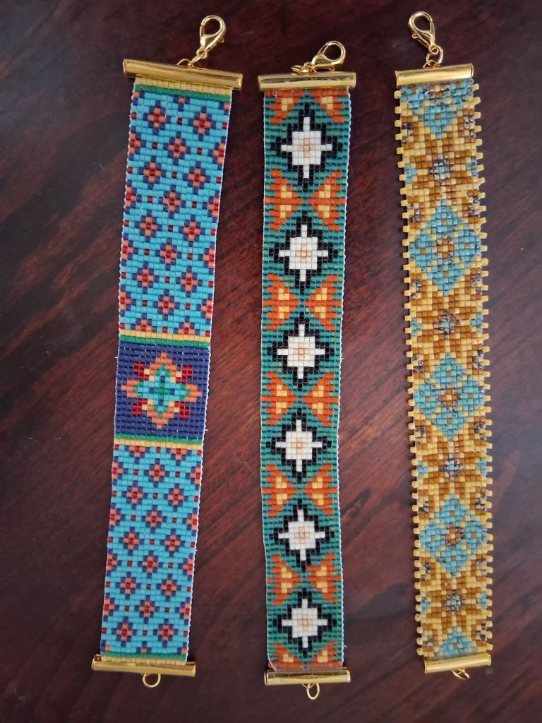Laura creates stunning tapestry style bracelets based on designs by Ann Benson.